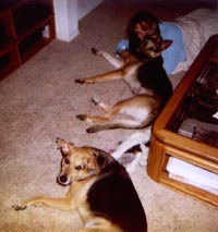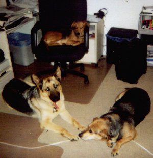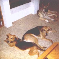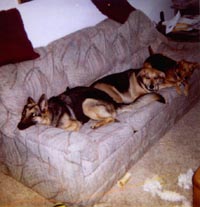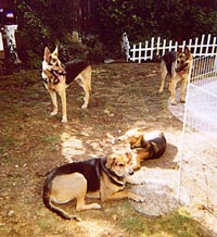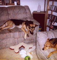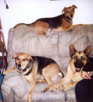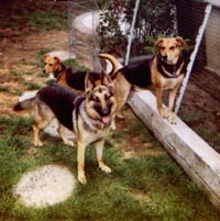 Toby Got a New Family! Toby is a HUGE one-year-old, pure bred GSD. He's very friendly and gentle, but doesn't know his own strength yet -- body too large for brain. He also suffers from a lack of discipline. Toby is very eager to please so he's soaking up some obedience training during his foster period. He likes to fetch balls and will follow you around just to be nearby. He seems to be good with other dogs and should be great with children. |